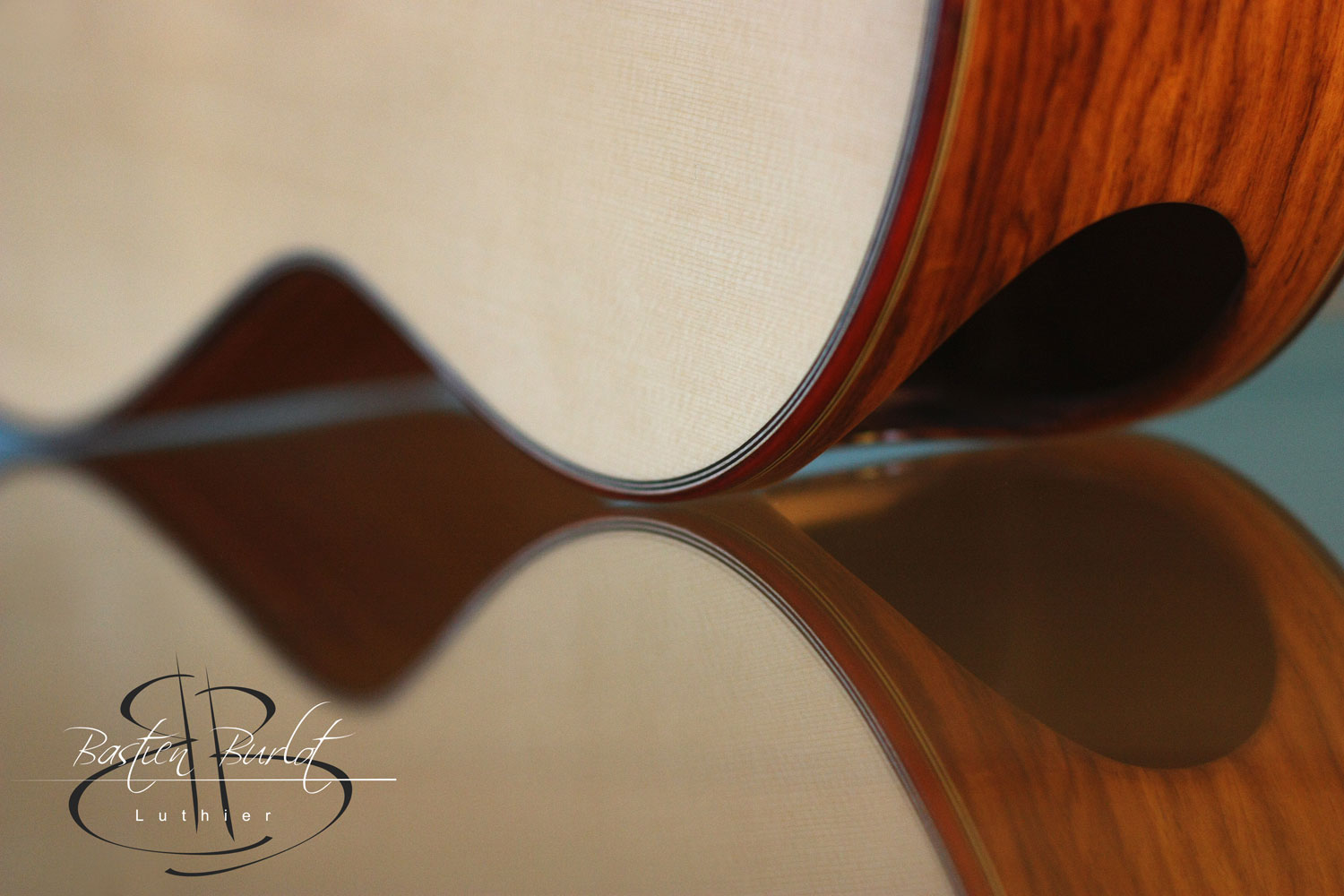 Aujourd’hui, avec la guitare acoustique de concert « Flamme » une nouvelle étape est franchie. Bien sûr elle possède toutes les caractéristiques qui façonnent le « Son Burlot », mais elle va encore plus loin, en offrant désormais une homogénéité de perception (guitariste/auditoire) inégalée jusqu’à présent.